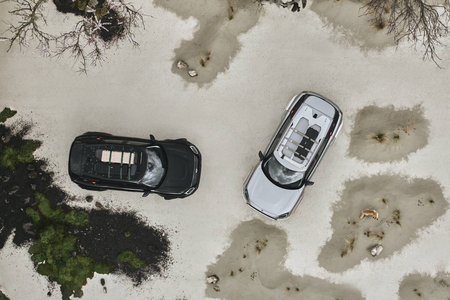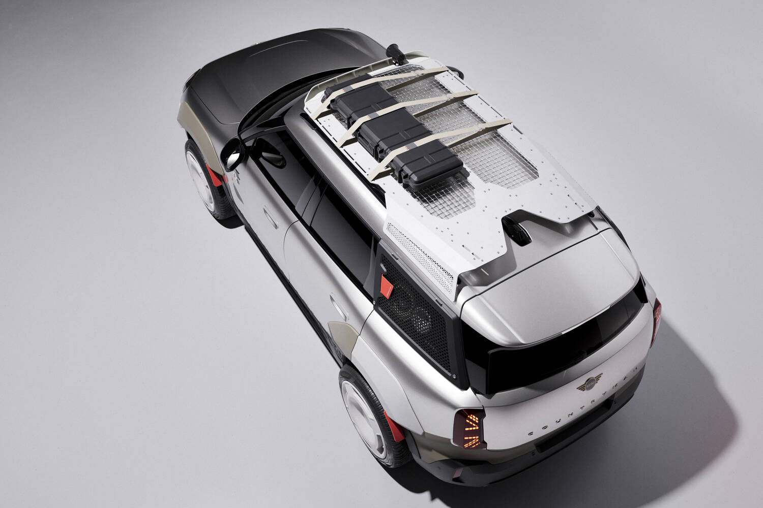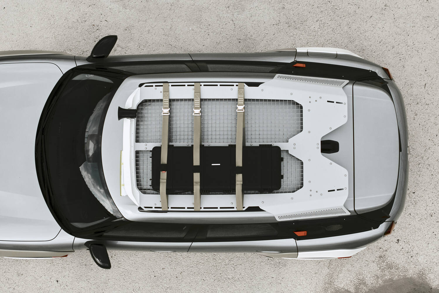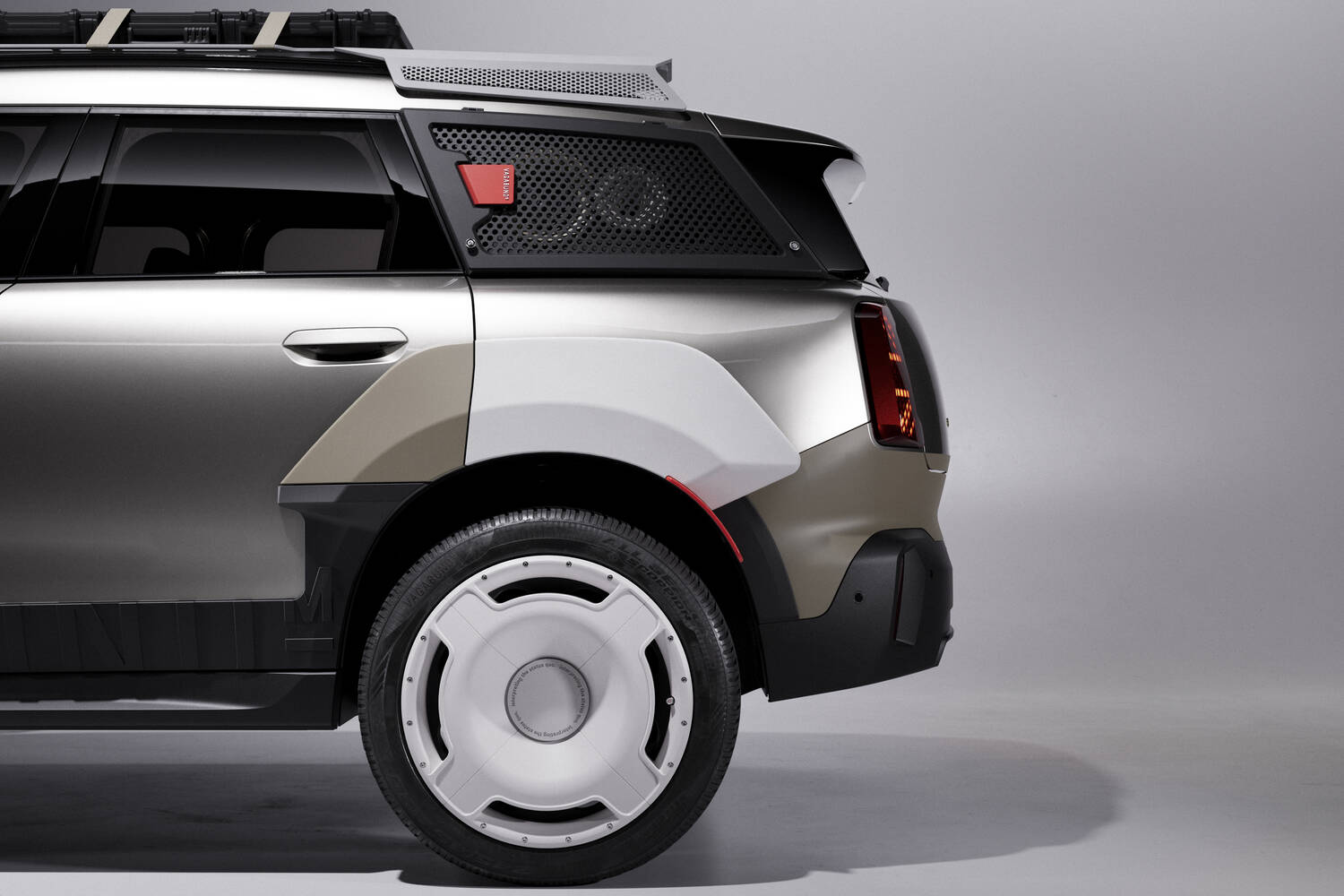 There's also, for both cars, a roof rack made up of three laser-cut and folded aluminium plates, complemented by an integrated stainless-steel mesh as an open surface, and again the design of this is meant to look like a speaker.