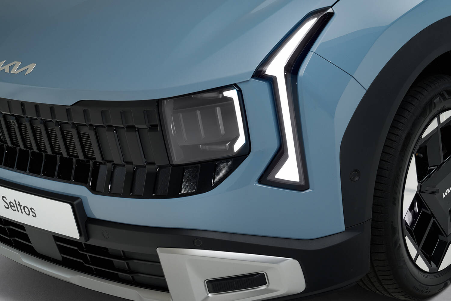The Seltos features twin upright LED daytime running lights and a more pronounced grille than Kia's other models.