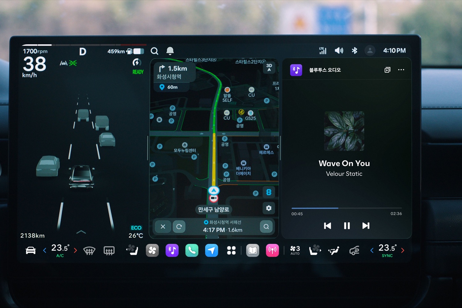 You guessed right. Pleos incorporates Hyundai's own 'Gleo' AI voice control system, which is, of course, designed to be able to understand and interact with you in normal, conversational ways. You can use it to control vehicle functions, including navigation, adjust climate settings and access vehicle manual information, and if you say something like 'turn on my heated seat', the system can automatically tell where in the car the voice is coming from, and turn on the correct seat.
