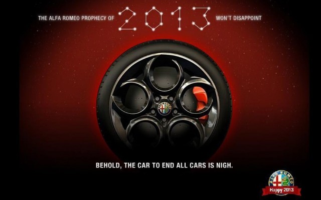 Alfa Romeo has released a teaser image to generate interest in the 4C ahead of the Geneva Motor Show in March. Showing a five-spoke alloy wheel it proclaims 'The Alfa Romeo prophecy of 2013 won't disappoint,' and 'Behold, the car to end all cars is nigh'; confident stuff!