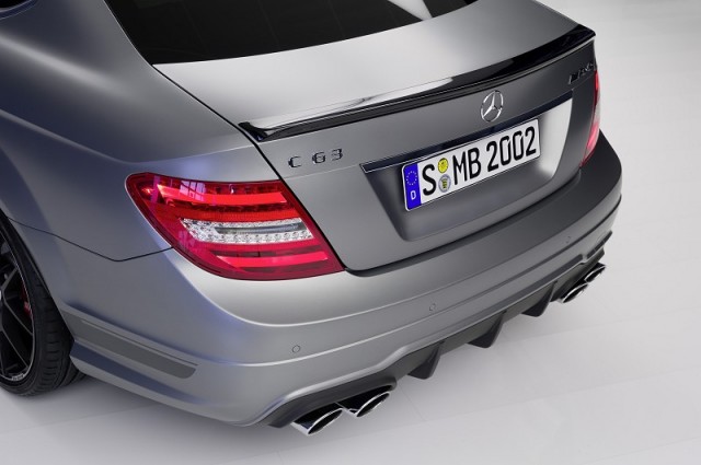 There's not really much AMG can do the C 63 to make it more of an extrovert, but it has dipped into the parts bin to find a Black Series sticker, added a vented bonnet, new cross-spoke alloy wheels (behind which sit composite brakes with red callipers), a boot spoiler (saloon and coupé only) and some matte graphite graphics along the lower side sills. High gloss black finishes cover the mirror caps, the daytime running light surrounds, boot spoiler and radiator grille, while darkened headlamps also feature.