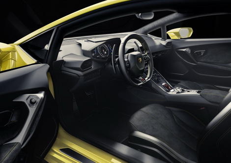 Lamborghini is claiming a big increase in cabin quality over the outgoing Gallardo (which was hardly a slouch in that department) and such things as leather and Alcantara upholstery and a 12.3-inch TFT touchscreen will be standard.