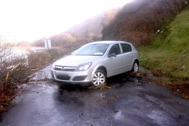 Rory Jackson, his wife Celine, their son Aaron and unsuspecting German exchange student Sid, where driving in the family's 2006 Opel Astra near the beach at Tragummna (near Skibbereen in Co. Cork) when a massive wave engulfed the car. Quickly abandoning the vehicle, family and friend scaled a nearby embankment to get to safety and then were forced to watch as their precious car was swept away by the tide, coming to rest around 10 metres further along.
