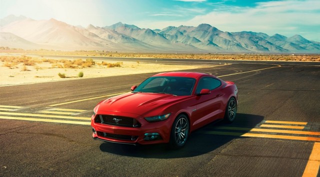 It's the Ford Mustang, shown here in fully-Euro-friendly spec with new lights, new mirrors and slightly revised front styling. Its 2.3-litre four-cylinder EcoBoost engine is also now confirmed to come with 314hp.