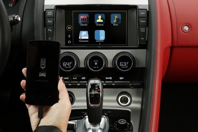 Jaguar and Land Rover is using this week's LA Auto Show to give us a first look at its new justDrive infotainment system, which is designed to work best with Apple iOS 8 and Google Android smartphones. Basically, justDrive is a software suite that connects your phone to your car and then allows you to use it, safely, while on the move. JLR says that you can talk to the system conversationally, rather than using specific menu commands, and it will use its connection to your phone and its apps to go and try and find the best answer for your query.