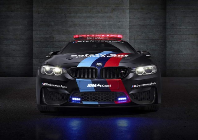 This is the new MotoGP safety car - a BMW M4 Coupé, which continues a 16-year tradition of BMW being the official vehicle supplier to the MotoGP series. It features all the usual mod-cons to better help it make a nice view for Valentino Rossi of a Sunday afternoon - carbon fibre boot spoiler, LED red emergency lights on the roof and a gorgeous swoop of the classic BMW M red, blue and purple racing colours. It also has water injection.