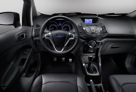 Shown on the Ford stand at Geneva was a natty Deep Impact Blue EcoSport, said to offer 'an insight into the upgrades and equipment for a model that will be available to order towards the end of this year'. This should be called the EcoSport S, like the show car, but as yet, this trim name hasn't been confirmed for Ireland. Further idiosyncrasies of the S are a black roof without roof rails, black mirror caps and a unique 17-inch alloy wheel. A rear diffuser and privacy glass will also be offered.