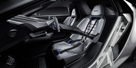 The hybrid system propelling the concept is made up of a turbocharged 1.6-litre four-cylinder petrol engine (apparently based on that in the Volkswagen Polo R WRC) producing 299hp and 400Nm of torque, a lithium-ion battery and two electric motors of 85kW output (about 115hp). One of the motors is integrated into the casing of the front-mounted six-speed DSG automatic gearbox, while the other sits on the rear axle - allowing the use of four-wheel drive at times. Total maximum system outputs are quoted at 400hp and 670Nm; while in the sportiest driving mode it can accelerate the GTE Sport to 100km/h from rest in just 4.3 seconds and hit 280km/h.