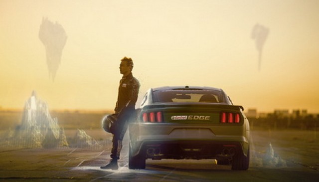 Powers was wearing an Oculus Rift Development Kit 2 (ORDK2) that transposed his 'real' 'Stang into a digital world full of rocks, tunnels and even a CGI Ken Block. And every manoeuvre he pulled in the game was mirrored by the actual Ford, which was slewing around a deserted landing strip.