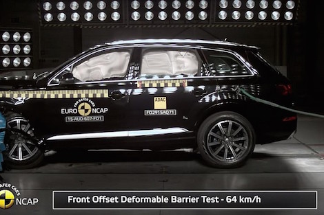 Seven of the nine new models were tested received a five-star rating. This month the Audi Q7, Ford Galaxy and S-Max, Mazda CX-3, Mitsubishi L200, Renault Kadjar and Volvo XC90 were assessed. The Mazda and Mitsubishi missed out on the top rating because autonomous emergency braking (AEB) is not fitted as standard on the CX-3 and not offered on the L200.