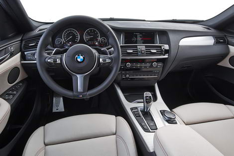 Inside, there's a tasty looking M leather sports steering wheel with gearshift paddles and plenty of M badging, plus 'X4 M40i' emblazoned on the door sills and within the main instruments. Standard features include BMW's 'Professional' satnav and leather upholstery.