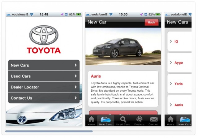 Up to date pictures and prices of all the cars are included. David Shannon, MD of Toyota Ireland, said: "We are cognisant that today's consumers are constantly on-the-go and require information at their fingertips, so we developed the iPhone app to cater specifically to their needs and give them up-to-date information directly to their mobile."