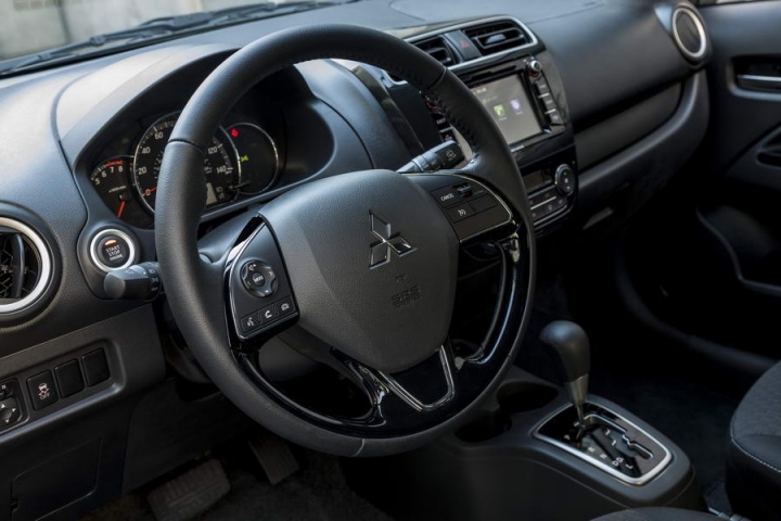 On the Space Star (Mirage sounds much better, no?) there are similar changes. There's a new front end here too, with a new grille and lights, while inside there are also material upgrades, a new instrument binnacle and, for the first time, the option of Apple CarPlay and Android Auto for the stereo and infotainment system. Buyers can also upgrade the sound system to a full-on Rockford Fosgate (trust me, it's good) stereo.