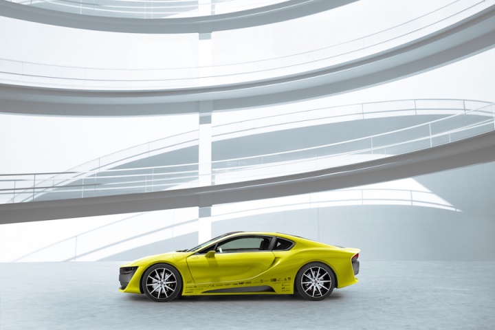 What else? Well, it has a Harman Connected Car technologies infotainment system that learns the preferences of its user over time, preventing the need for repetitive manual satnav inputs and so on. The dashboard is made out of lightweight polymers. An electrical heating system is drafted (if you'll forgive the clunky terminology) in to make the interior warmer, with a battery pre-heating and auxiliary climate control. The battery pack can be used as a stationary energy storage unit as a secondary function. A Mica 'industrial minicomputer' is on board, to record the drivetrain data and send it on to an independent company, for analysis and records-keeping. Much of the car's features can be controlled by a smartphone, while it features radar and car-to-x comms systems. And it's even permanently connected to SIX, the Swiss stock exchange, allowing for 'on-the-go' secure transactions in the Ʃtos - you can even pay people smaller amounts, or tips, by swiping the exterior mirror. Because that's an essential we've always felt modern cars are missing: a mirror-based tips-paying set-up.