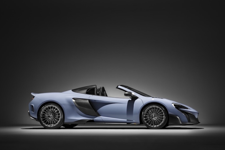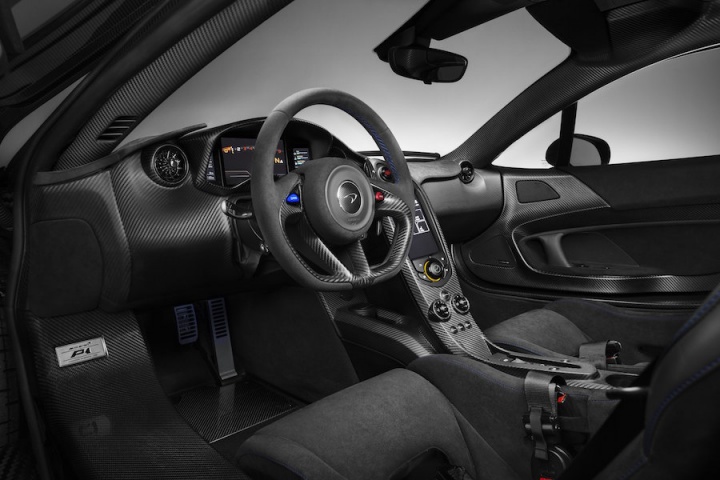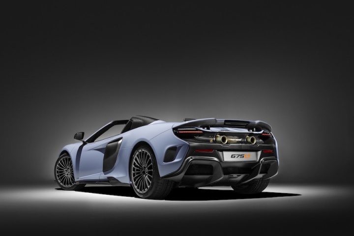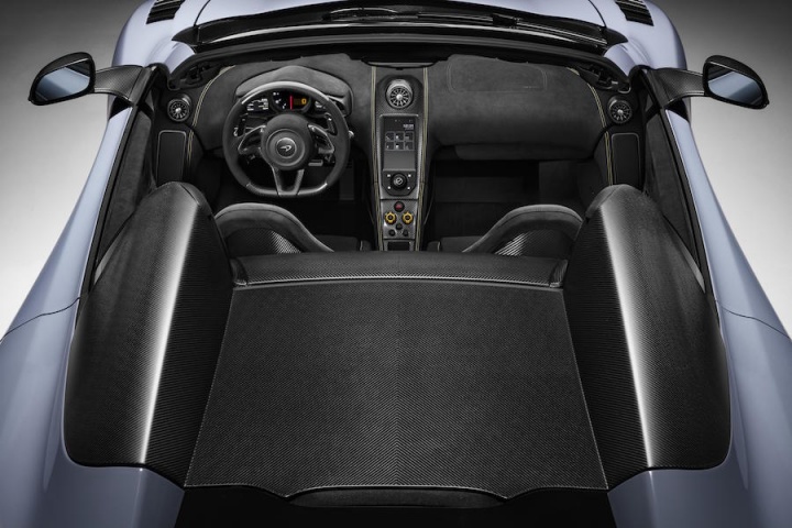 The 675LT Spider, one of the 500 built that have already all been accounted for, also features lotsa carbon. Finished in the MSO Defined shade of Ceramic Grey, additional carbon fibre compared to the, er, regular LT includes: the retractable hardtop, finished in satin CF, which can be operated up to 40km/h and which saves a whole kilogramme of weight; CF louvres on the front wings; the Longtail Airbrake has body colour on the top and natural weave CF underneath; and there's more of the desirable material on the front bumper end plates, side skirts, side intakes and rear bumper. Inside are a pair of black Alcantara racing seats with Xenon Yellow stitching, while controls within are finished in the 675LT Spider-specific hue of Solis. Like the P1 by MSO, the 675LT has the same top quality gold heatshield.
