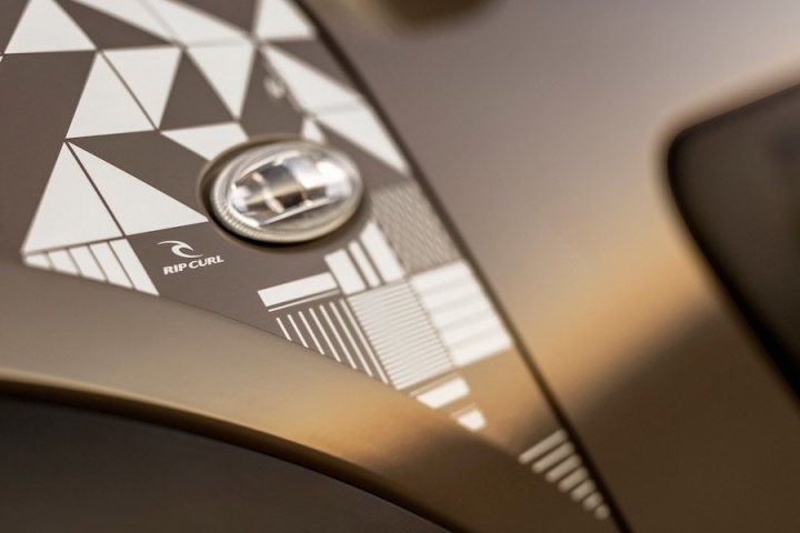 The Rip Curl (if you'll permit us to call it that from now on, rather than its full name) is marked out by white detailing. It's on the door mirrors and roof bars for starters, although the vertical strips on the wings and the horizontal decals on the rear quarter-lights are more pertinent, as their swirly pattern incorporates Rip Curl's logo.