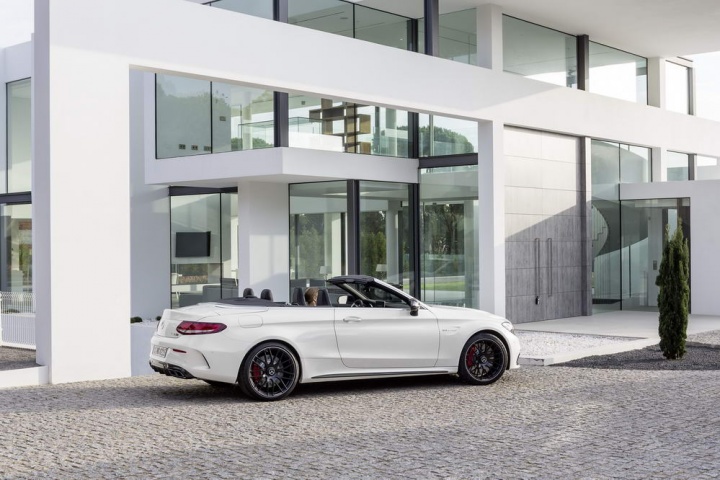 Like any other C 63, the Cabriolet gets the 4.0-litre V8 with a pair of 'hot inside V' turbochargers. This develops 476hp at 5,500- to 6,250rpm, coupled to 650Nm of torque at 1,750- to 4,500rpm, as the standard C 63, with those figures raised to 510hp and 700Nm across the same rev ranges for the S variant. Mercedes-AMG quotes the same fuel economy and CO2 emissions for both, their brackets being 8.9- to 9.3 litres/100km (30.4- to 31.7mpg) and 208- to 218g/km, depending on which wheels are fitted.