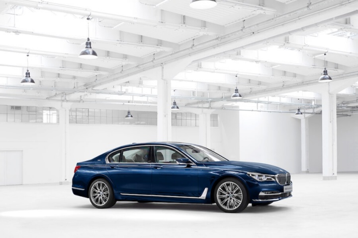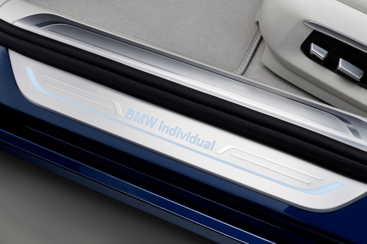There are three engines and five drivetrain configurations available for the 7 Series Centennial, which we'll go into in more detail in the Mechanicals section, but whichever specification you opt for, you end up with a long-wheelbase body. This is painted in a BMW Individual shade called Centennial Blue Metallic and it is complemented by a handwritten graphic on the B-pillars which says 'The Next 100 Years', as well as a set of forged 20-inch BMW Individual light-alloy V-spoke wheels in bicolour Silver/Ferric Grey.