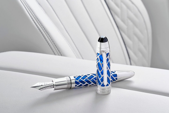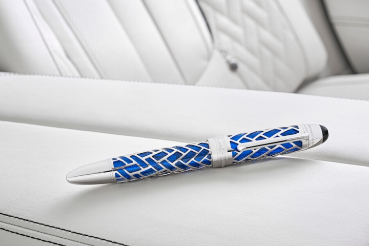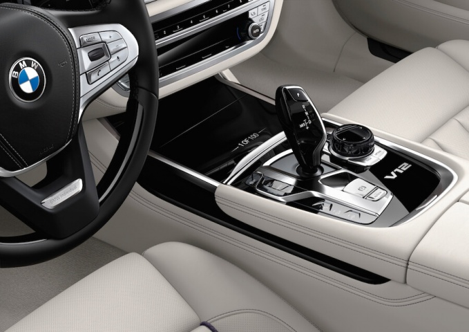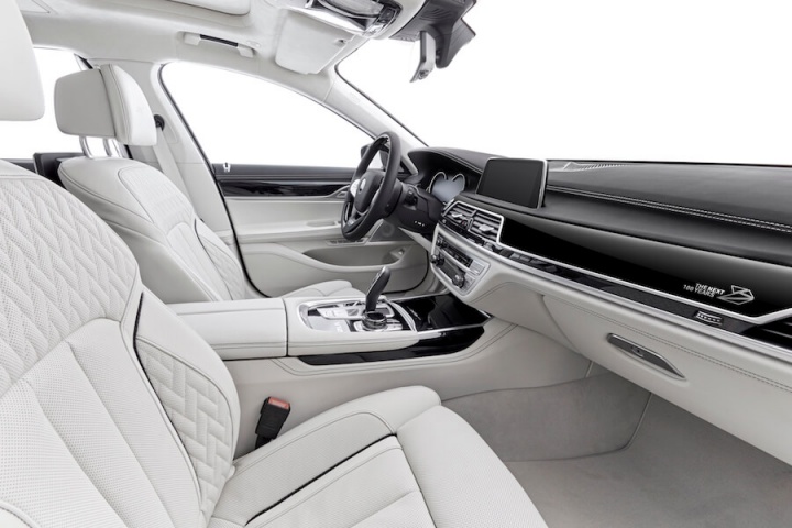 More of that BMW Individual goodness abounds within, as quilted fine grain Merino full leather trim in Smoke White with black accents and further interior details from the exclusive Munich catalogue can be found. As can a fountain pen. No, really; this is one of the selling points of the Centennial. BMW has teamed up with Montblanc to create a similarly limited edition stylus. It features a lot of the design signatures that can be found in the Centennial Seven, such as a surface structure reminiscent of the quilted seats, transparent elements shaded the Centennial Blue of the car's exterior, and a rhodium-plated gold nib which has an engraving on it that looks like the backstitching found on the BMW's chairs. Impressive stuff.