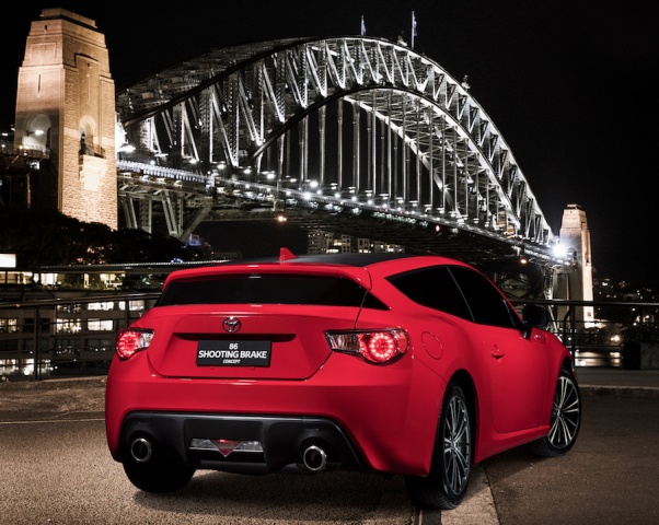 "The Toyota GT86 lends itself perfectly to a concept that expands its appeal with added versatility while retaining its sleek and sporty coupe styling and sharp, responsive driving character," said Toyota Australia divisional manager national marketing Brad Cramb. "The Shooting Brake concept is a classy option for active couples or a second car for families who want something different. Equally suited to weekends away as well as the track, it's a car you could buy with your head and your heart."