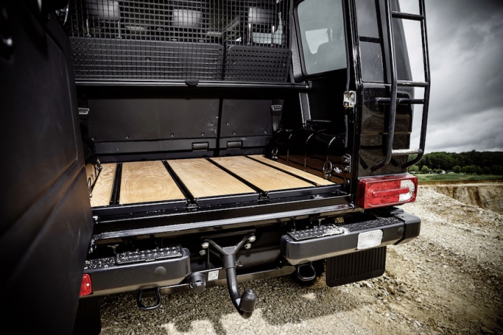 The optional Professional Off Road Pack also comes with protectors for the lights, a wood-floored load compartment and a roof rack with ladder.