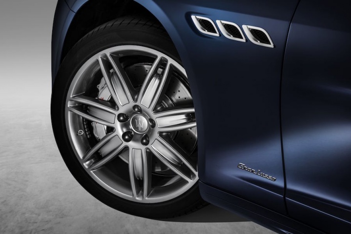 Although it's not as pretty as its immediate predecessor, the Maserati Four-door... sorry, Quattroporte didn't need dramatic remedial surgery. Thus, what we have here are new matte black front bumper and rear diffuser inserts, the grille in the Maser's nose is said to be more 'pointed and imposing', plus it wears new vertical chrome elements, while the side skirts and exterior mirrors are also matte black. What you can't see is an electrically adjustable Air Shutter behind the grille, which can open and close depending on engine loads to improve the aerodynamic drag of the car by 10 per cent.