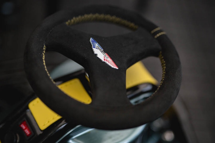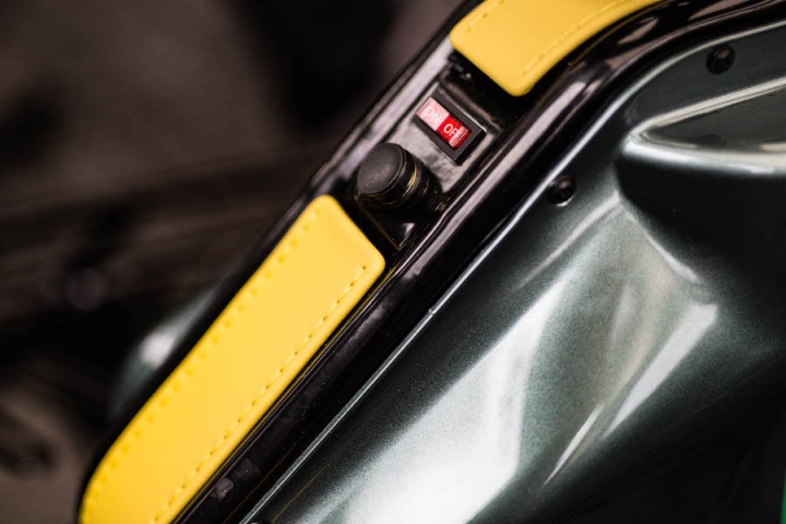 The karts were specially modified by Aston Martin's bespoke 'Q' service, and had leather and Alcantara steering wheels and seats and a 'Stirling Green' paint job.