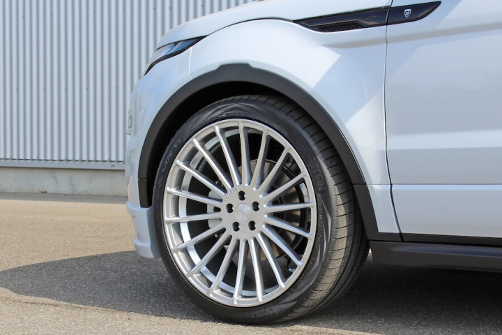 Ah, that's better. Now then, Hamann has tweaked the 2.0-litre 180hp Ingenium turbo diesel engine to produce 210hp and 480Nm of torque, climbs of 30hp and 60Nm respectively, and has also had a go at the 2.0-litre petrol turbo, cranking that up to 260hp and 395Nm. The car gets tweaked suspension, bigger wheels (mono block items offered in 22-inch size with a variety of finishes) and that chunky, awful bodykit with the big front bumper, two-part grille, extra air intakes, black-finished exhaust system and more.