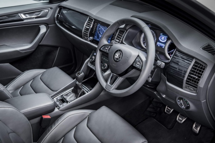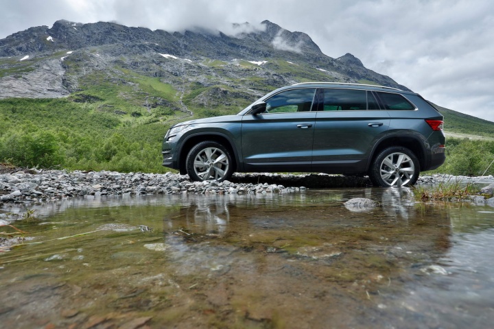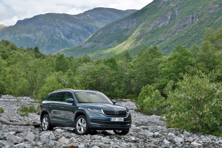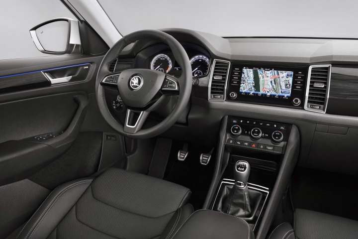 Skoda has laid on a choice of five powertrains, two diesel and three petrol, for the launch of the Kodiaq. Both diesels are 2.0-litre TDI units, one delivering 150hp, 340Nm, 56.5mpg (5.0 litres/100km) and 131g/km CO2, the other packing 190hp and 400Nm, good enough for 0-100km/h in 8.6 seconds and a 210km/h top speed. There will be a third 115hp diesel unit coming in 2018.