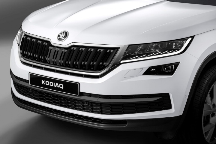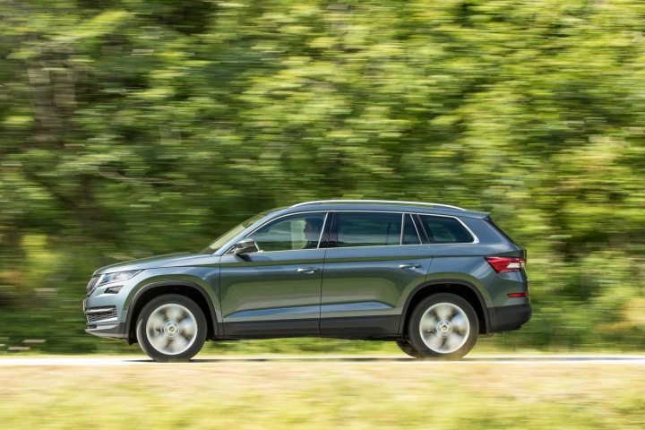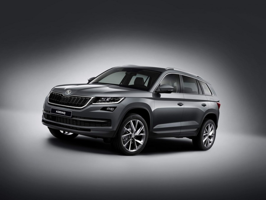 It's a large machine, the Kodiaq, sitting at 4,697mm long, 1,882mm wide and 1,676mm high; the wheelbase is 2,791mm and yes, it's an MQB platform underneath, so this seven-seat SUV is roughly related to the Volkswagen Golf. It wears all the traditional Skoda design signatures and it wears them well, the production Kodiaq looking very close in appearance to the Vision S concept that previewed it.