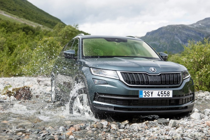 Over on the petrol front is a pair of 1.4 TSI units and a 2.0-litre TSI, with power ratings of 125, 150 and 180hp. All engines feature direct injection, turbocharging (natch), brake energy recovery and a thermo-management system to maximise fuel economy. Drive goes to either the front wheels or all four, with a choice of six-speed manual or DSG automatic transmissions - the latter comes in both six- and seven-speed guises. Skoda has fitted the Kodiaq with multilink rear suspension and will offer the XDS+ electronic diff-lock, Driving Mode Select, adaptive Dynamic Chassis Control and a special off-road setting for the 4WD versions.