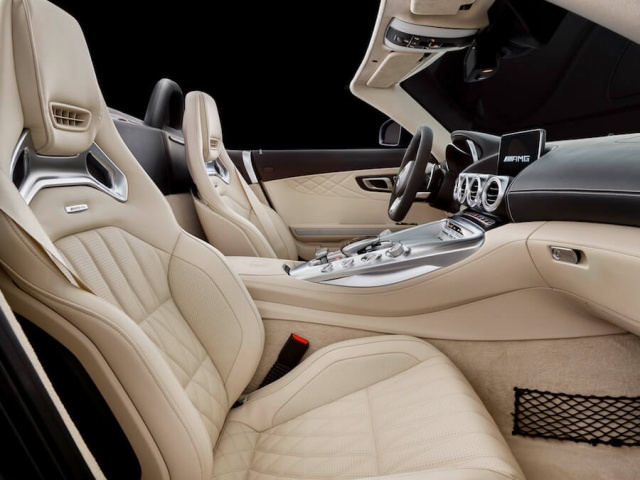 While the interior of the GT Roadster isn't drastically different from that in the AMG GT coupe, it does bring with it a few firsts. The optional AMG 'performance' seats, for example, can now be had with three-stage neck-level heating (called Airscarf by Mercedes) and three-stage seat ventilation. There's also new upholstery to choose from, called 'macchiato beige Exclusive nappa STYLE leather' by its maker - strange capitalisation included.