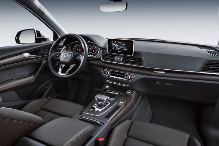 The Audi Q5 will launch in Ireland with a choice of 14 different exterior colours and five engines: four TDI diesels and one TFSI petrol. Audi engineers have managed to add more power, while reducing fuel consumption across the board. The 2.0 TDI engines have up to a 27hp increase in power with outputs of 150hp, 163hp and 190hp, and are particularly efficient. There will eventually be a twin-turbo 2.0 TDI with 240hp, as well as a V6 diesel option. There will also be ultra-fast SQ5 and RS Q5 versions, but those are for a later date.