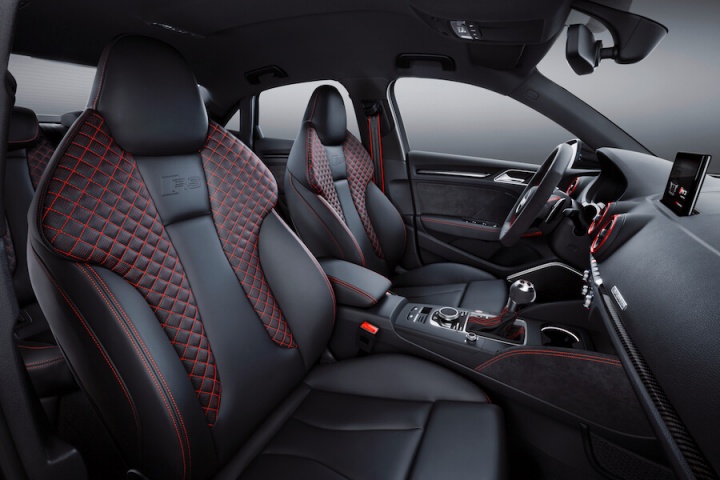 0-100km/h comes up in just 4.1 seconds, while top speed is limited to 250km/h. On the inside, there are sporty bucket seats and the option of a special RS version of Audi's all-digital Virtual Cockpit instrument panel, which puts the rev-counter front and centre.