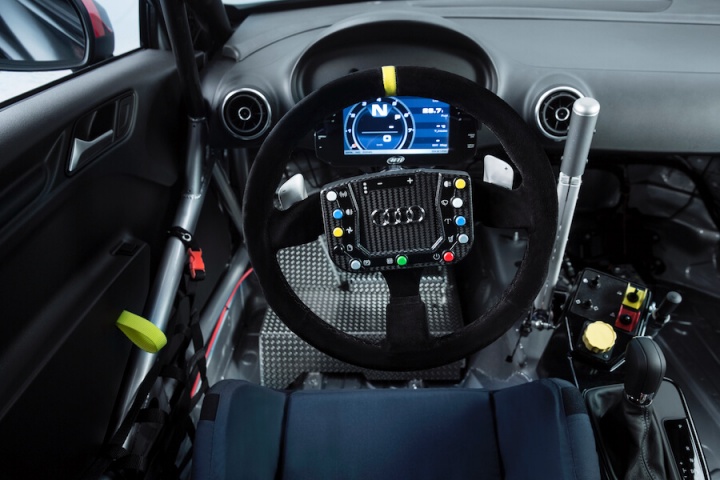 The requisite safety features include a full FIA-compliant safety cell and fuel tank, wraparound seat and NASCAR-style safety nets either side of the driver. There's even a rescue hatch in the roof, similar to the R8 LMS racer. It certainly looks the business, and it would be very cool to see what kind of lap time you could do around Mondello in one...