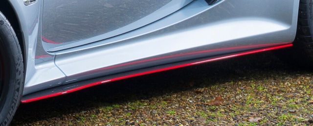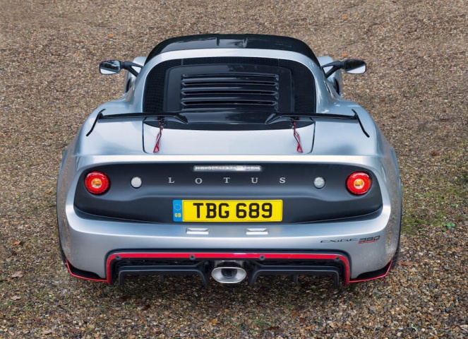 Function dictates form here, with aerodynamic trickery giving a not-insignificant 140kg of downforce at top speed. This is achieved by widespread revisions over the Exige Sport 350 including a big wing, a front splitter, a rear diffuser and even barge boards, all wearing the delicious weave of carbon fibre. Most of these also contribute to the crash diet that the Hethel designers put the car on, and there's a polycarbonate rear window instead of the usual glass item. In a display bordering on the fanatic, even the revised rear lights have lost a few hundred grams.