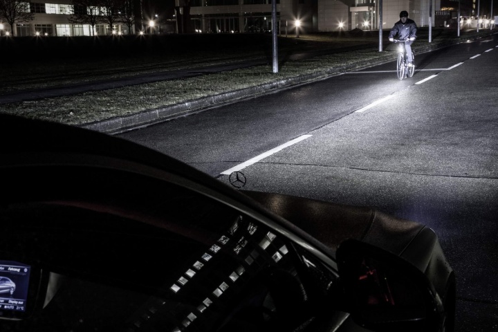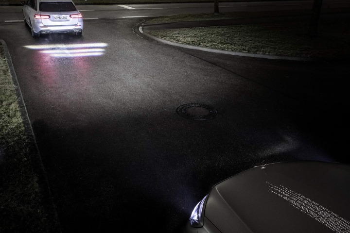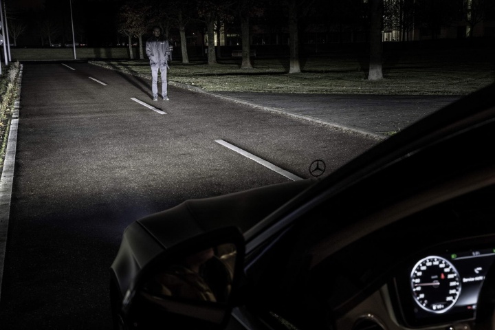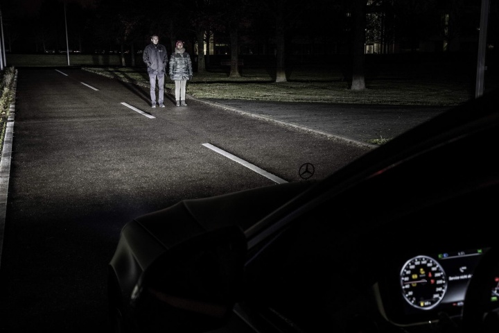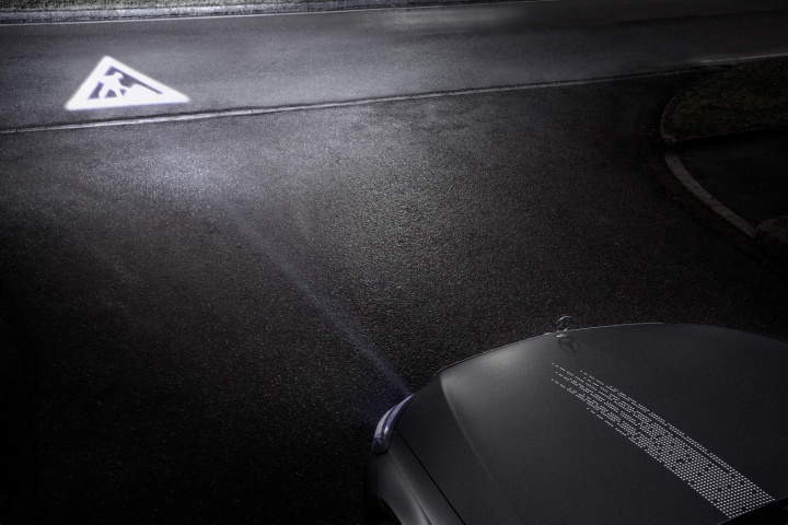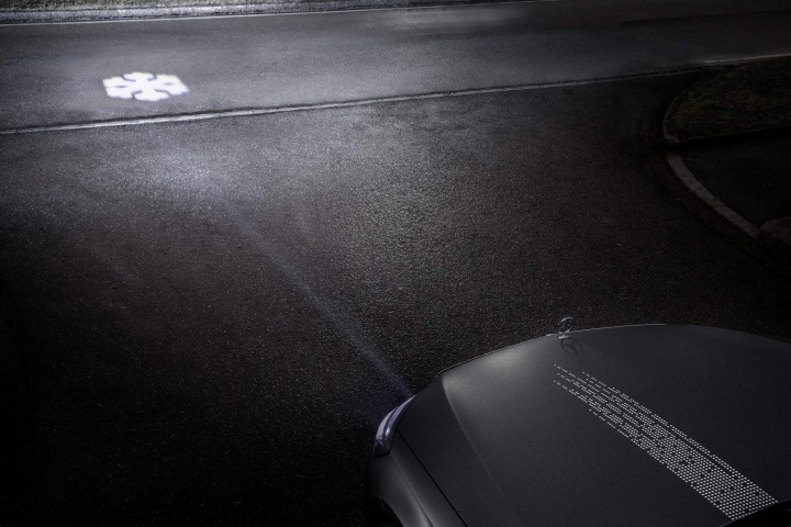 It builds on existing LED headlight technology offered by Mercedes - and other car manufacturers - whereby parts of the main beam field can be selectively dipped to ensure that oncoming cars aren't blinded by glare, or that vehicles ahead don't get a rear-view mirror full of blazing light.