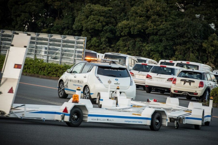 Nissan, which has been making more than a little noise about its efforts in the robotic car sphere lately, has introduced a new concept for self-driving cars - Intelligent Vehicle Towing, or IVT at its Oppama factory in Japan.