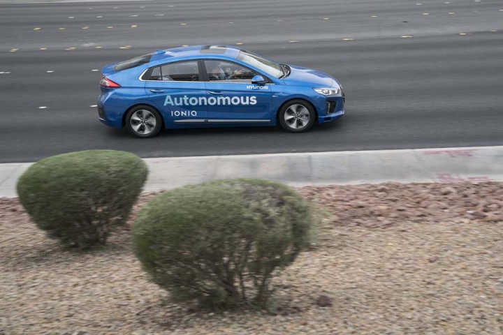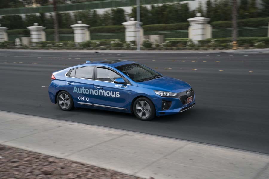 The autonomous car in question is an Ioniq, with two examples navigating test routes around the Nevadan city as part of trials in urban environments, while visitors to CES can experience a driverless journey in a virtual reality simulator on the carmaker's show stand. Hyundai is particularly proud of the way it has hidden the LiDAR technology for the self-driving Ioniq behind its front bumper, rather than mounting it on the roof.