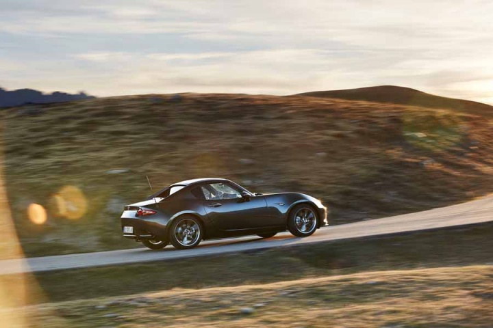 There will be two grade levels for the Mazda MX-5 RF. Across the range the MX-5 RF features alloy wheels, LED headlights, MZD Connect, cruise control and automatic air conditioning. Mazda MX-5 RF GT models with the 1.5-litre engine are distinguished by 16-inch gunmetal alloy wheels and piano black wing mirrors, while the 2.0-litre GT is differentiated by 17-inch bright alloy wheels and body coloured wing mirrors.