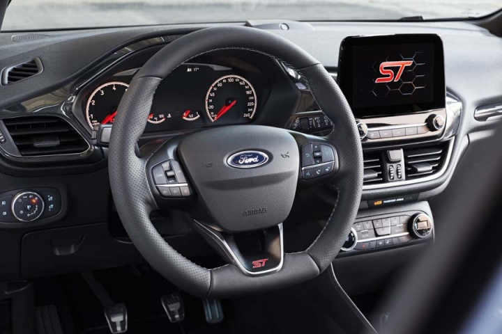 Not only is it the first Ford Performance model with a three-banger under the hood, it's also the first Fiesta ST to get Drive Modes, which allow for the engine, steering and stability control to all be configured to Normal, Sport and Track settings as desired. This is similar to the Focus RS, which has this sort of technology. Also fitted is Torque Vectoring Control, to aid handling. Drive Modes will also adjust something that might not meet universal approval - the Fiesta ST's Electronic Sound Enhancement (ESE). Hmm, synthetic noises on a triple? Surely it sounds good enough as it is?
