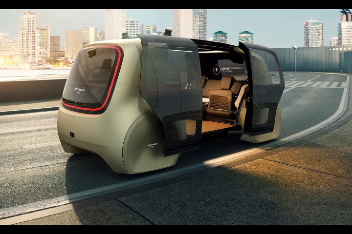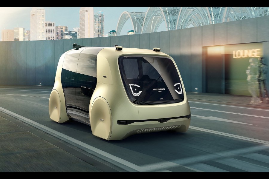 This squared-off pod is Volkswagen's Sedric (SElf-DRIving Car), a concept of a Level Five autonomous car that could be on sale by 2025, primarily with ride-sharing fleets (such as Gett, in which Volkswagen has invested or MOIA, its own in-house mobility solutions company) but also for private purchase.