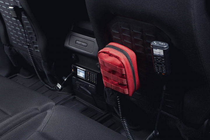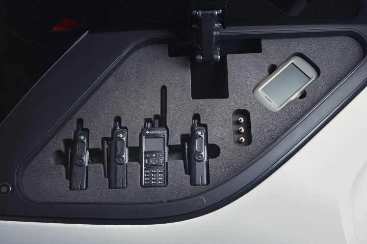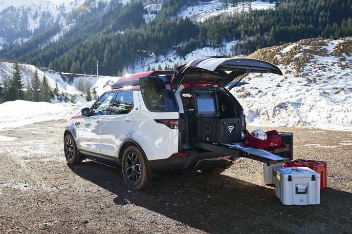 In the back of the Discovery, there's a slide-out floor, which can be used as a work surface, while there are mounting points for search and rescue equipment and power points that can accept plug types from all countries.