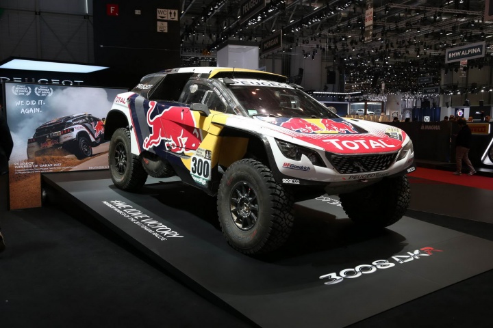 - Peugeot's Dakar Rally winning 3008 DKR on display.
