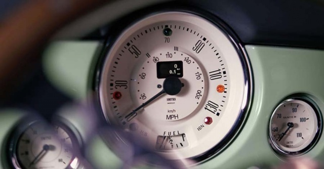 Inside, the car gets a full-leather-lined cabin, with a full-width leather dash, a wood-rimmed Moto-Lita steering wheel, keyless entry, a touch-screen media system with Apple CarPlay and Android Auto, classic-style Smiths dials, and bespoke hand-made leather seats. There's even a cupholder.