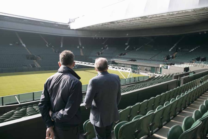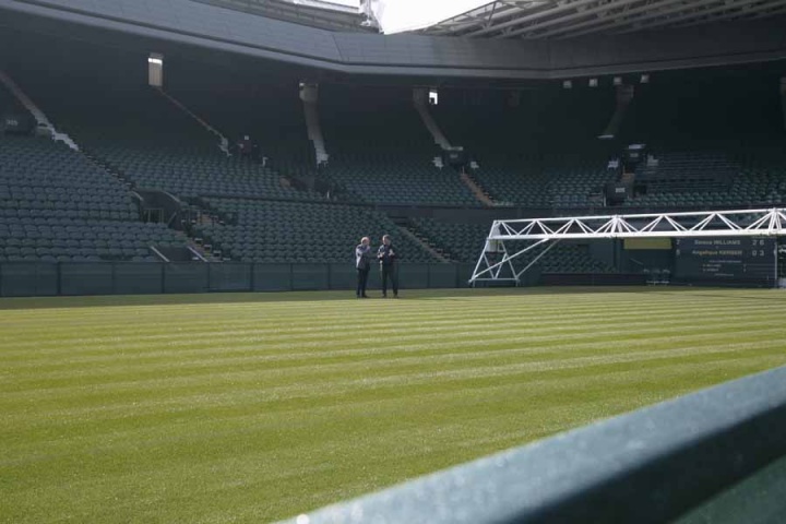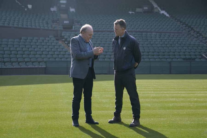 Jaguar Director of Design Ian Callum watched as ground staff transformed the venue's famous white lines under the expert eye of Head Groundsman Neil Stubley.