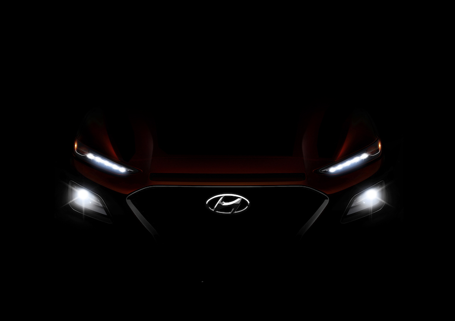 Hyundai will launch the Kona, a small crossover to rival the Nissan Juke, this summer and here's a heavily blacked-out teaser photo of what we can expect. What we can expect, it seems, is much more aggressive, heavily accented ('scuse the pun) styling than we've been used to from Hyundai in the past couple of years.