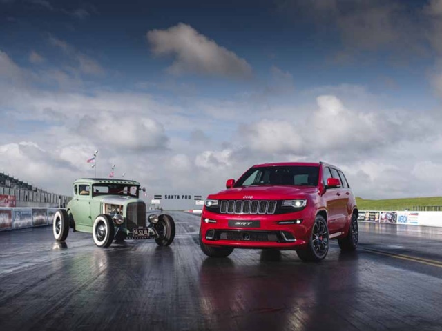 Facing up against the Grand Cherokee, with its 6.4-litre V8 boasting 468hp, was a 1930s five-window coupe powered by a 1956 DeSoto Hemi V8 delivering around 330hp. UK drag racing champion Stuart Doignie drove the Jeep with drag specialist Kelvin Dunn behind the wheel of the hot rod. At the end of the run the modern car clocked a time of 13.3 seconds, beating its rival by 0.9 seconds. If you prefer a more familiar benchmark the Grand Cherokee made it to 100km/h in 4.5 seconds compared with 6.0 seconds for its older rival.