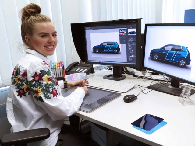 "Our apprentices are benefiting from their earlier decision to forge ahead with the design of their Worthersee GTI using digital technologies," said project manager Holger Schulke. Eric Miguel Lehrach (21), apprentice motor vehicle mechatronics technician and team spokesperson explained; "This way, we were able to take fast and efficient decisions concerning the design of wheel rims, paintwork and foils. In addition, we kept the design and production process for the special components needed for the sound system and rear-end equipment in our own hands."