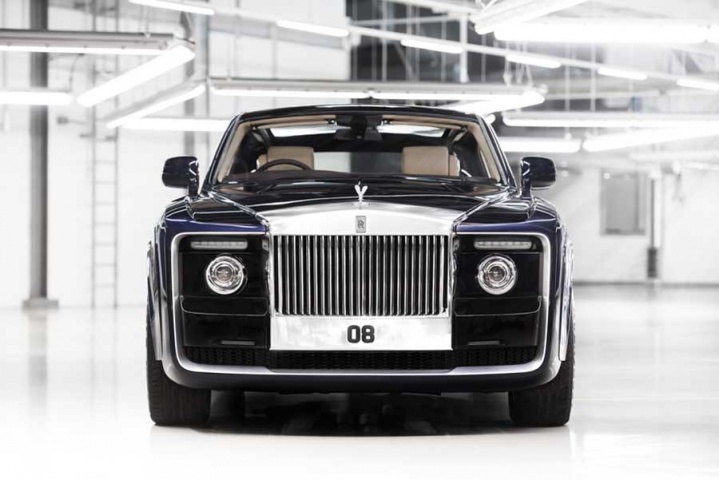 Based on a Phantom chassis and V12 engine, the Sweptail is inspired both by racing yachts and classic coach built Rollers of the 1920s and 1930s. Up front it features the largest-ever version of Rolls-Royce's iconic 'Parthenon' grille (astonishingly, it's milled from a solid billet of aluminium), and unique headlights with a huge square sweep of chrome.
